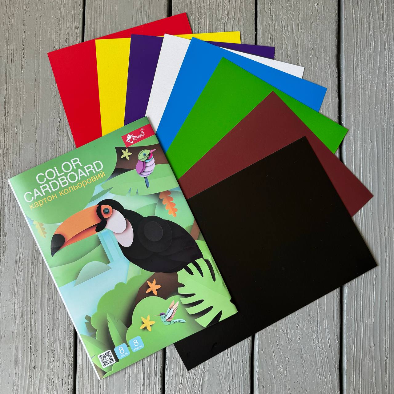 Кольоровий картон ОДНОСТОРОННІЙ А4, 8 кол.-8 арк.